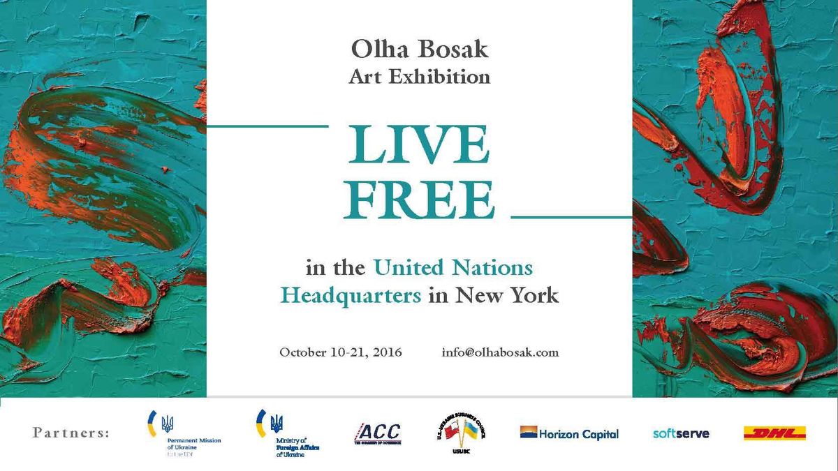 Live Free Art exhibition of Ukrainian talented artist Olha Bosak at the UN on October 11–21, 2016