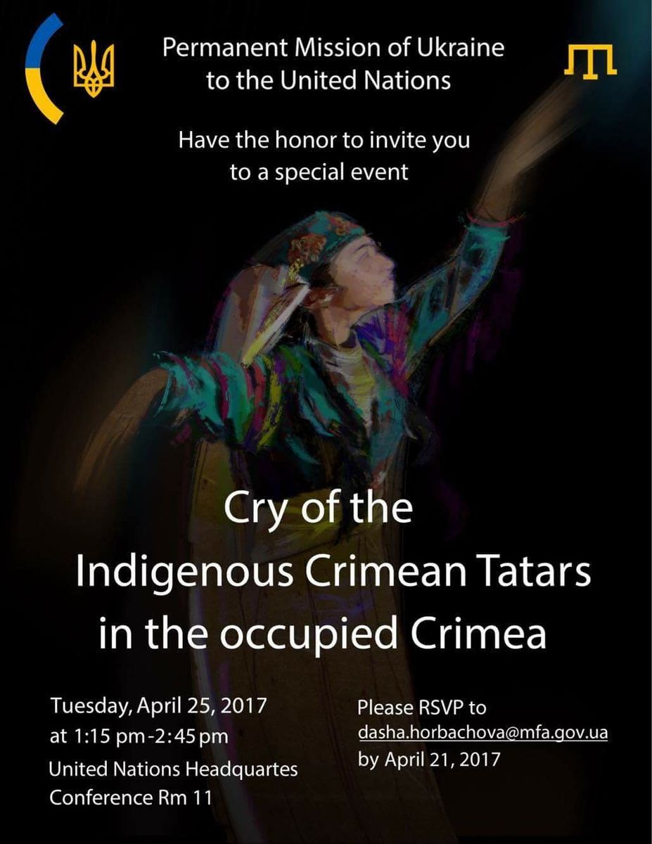 Three years passed since the beginning of the occupation of the Autonomous Republic of Crimea and the City of Sevastopol by the Russian Federation. Occupied Crimea, closed for any form of international control and monitoring, is now an area for systematic violations and abuses of human rights and fundamental freedoms, targeting, first of all, the Ukrainian activists and the indigenous people of Crimea — Crimean Tatars. The citizens of Ukraine are being groundlessly detained and imprisoned, activists are disappearing, their families and friends are facing intimidations. The Mejlis, a representative body of the Crimean Tatar people, was banned. Numerous human rights organizations, including the UN Human Rights Monitoring Mission in Ukraine, noted that in the occupied Crimea the relentless pressure upon its indigenous people over time did not become weaker rather it has acquired a systematic nature. It is of critical importance to hear the voices of the Crimean Tatars, who suffer from continuous human rights violations and abuses by the occupying authorities, and this special event will provide such an opportunity.