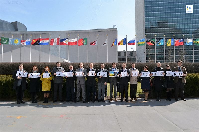 On March 7, 2016 the Permanent Mission of Ukraine to the UN organized a flash mob demanding from Russia release of Nadiya Savchenko, Ukrainian MP and political prisoner of Kremlin.