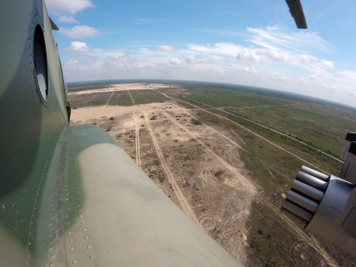 As part of the joint combat training of the 18th Separate Helicopter Unit, which is preparing for the tasks accomplishment in the DR Congo, pilots worked out training tasks for defeating ground targets using the whole range of armament, including anti-tank guided missiles, and rocket projectiles.