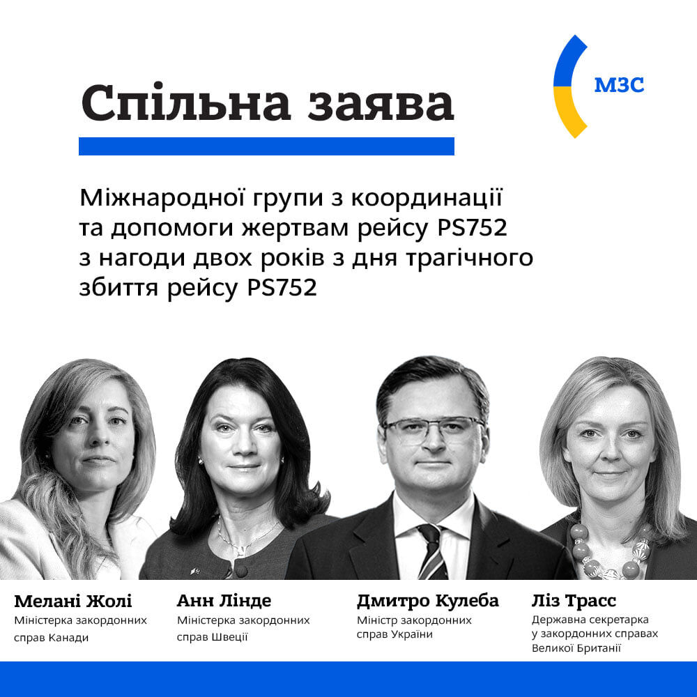 “We, Ministers representing Canada, Sweden, Ukraine, and the United Kingdom, honour the memory of the 176 innocent passengers and crew who lost their lives that day. We will never forget this senseless loss of life and stand in solidarity with the victims’ families. They deserve transparency, justice and accountability for this reprehensible tragedy.