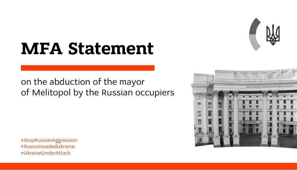 Statement of the MFA of Ukraine on the abduciton of the Mayor of Melitopol by the Russian occupiers