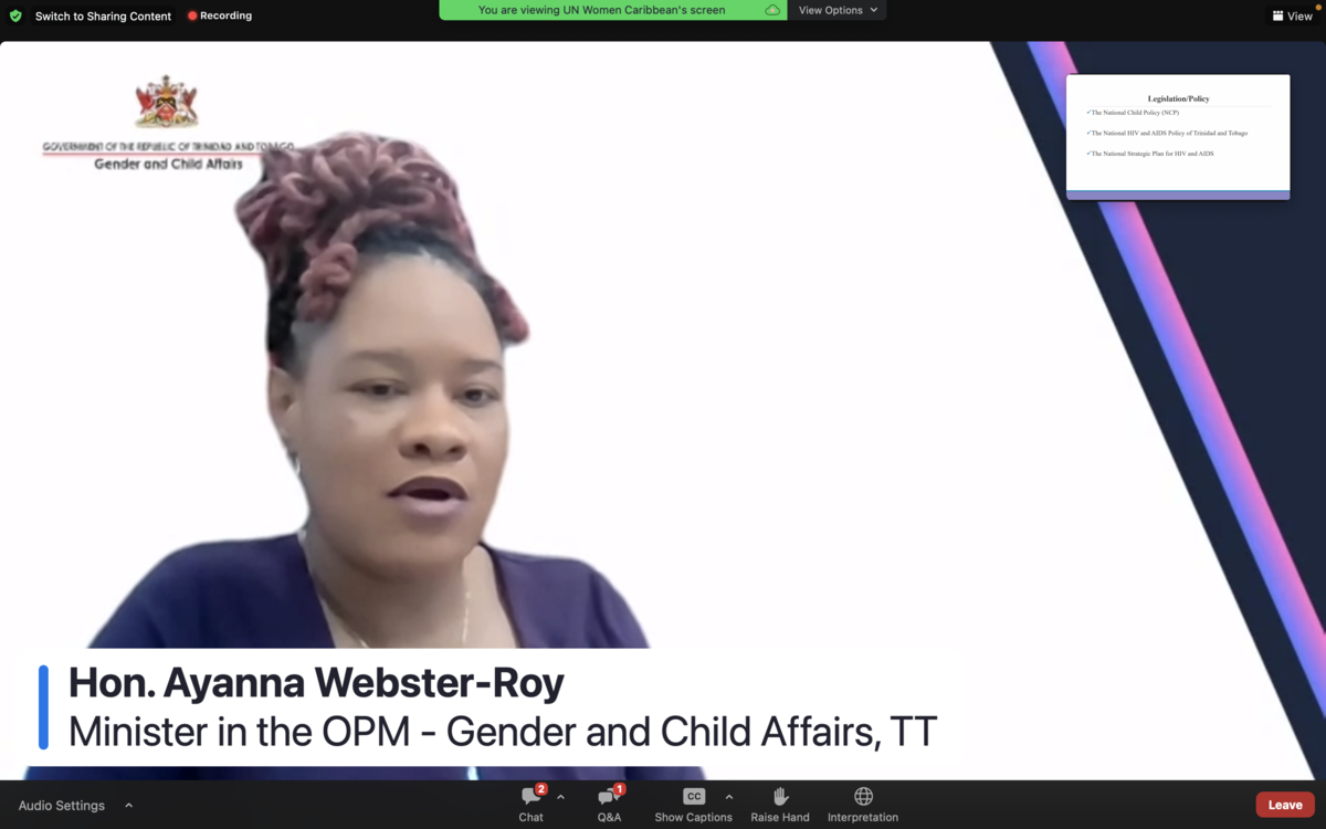 Ayanna Webster-Roy – Minister in the Office of the Prime Minister with responsibility for Gender and Child Affairs, Trinidad and Tobago